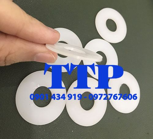 Vòng đệm nhựa PE trắng hay gọi là long đền nhựa PE màu trắng, ó giá thành rẻ, chống thấm nước, chống ẩm, thường dùng làm kín bulong, ốc vít, tránh trầy xước bề mặt kim loại.